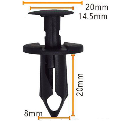 Introducendis nostris summus qualitas plastic fastener clips, disposito providere a secure et fideles nexu pro variis applications. Hi nigrae clips pluma circularis caput cum diameter 20mm et altitudo 14.5mm, cursus facilis pertractatio et institutionem.